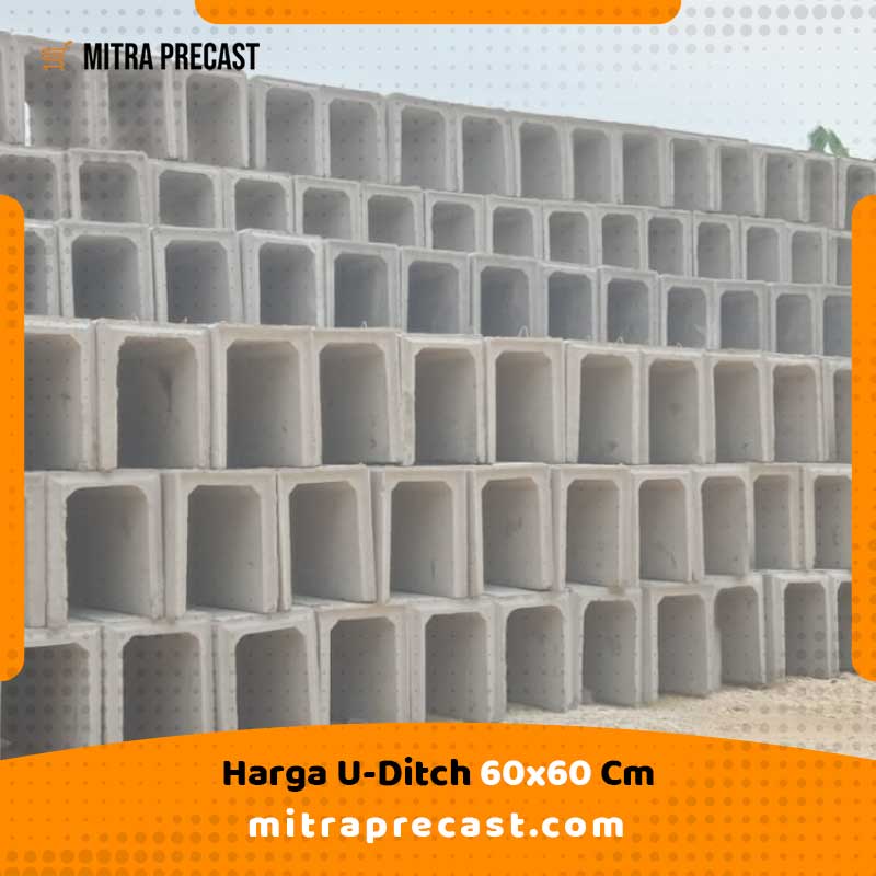 Uditch 60×60 cm adalah saluran beton pracetak berbentuk U dengan ukuran lebar dan tinggi masing-masing 60 cm. Ini adalah komponen yang umum berguna dalam proyek infrastruktur untuk mengalirkan air, baik itu air hujan, air limbah, atau air irigasi. U-ditch digunakan di berbagai proyek infrastruktur seperti pembangunan jalan, perumahan, kawasan industri, dan sebagainya, untuk mengelola sistem drainase.